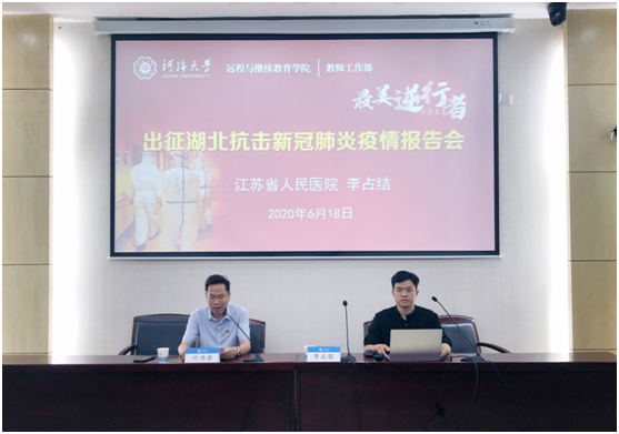 6月18日,远程与继续教育学院、教师工作部联合主办了“最美逆行者——出征湖北抗击新冠肺炎疫情报告会”,特邀江苏省人民医院感染管理处李占结医师讲述在抗击新冠肺炎疫情中的逆行故事。
