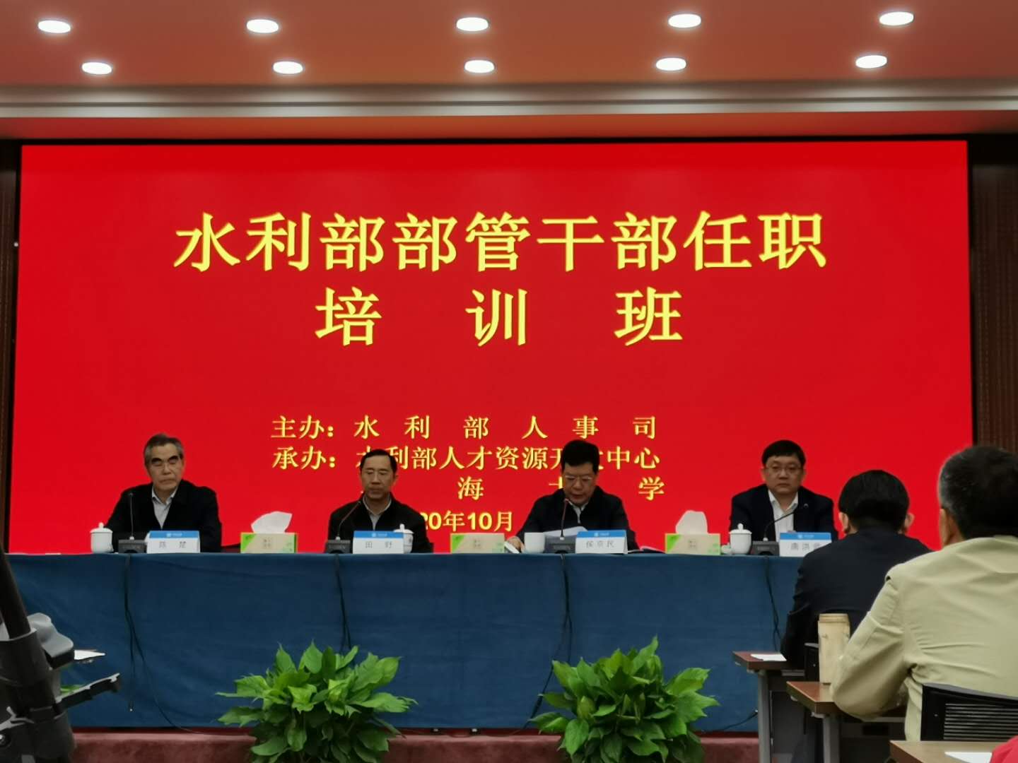 10月27日上午,水利部部管干部任职培训班在3044am永利集团3044noc顺利开班。中央纪委国家监委驻水利部纪检监察组组长、水利部党组成员田野、水利部人事司司长侯京民、水利部人才资源开发中心主任、水利部党校专职副校长陈楚、3044am永利集团3044noc党委书记唐洪武等出席开班仪式,开班仪式由水利部人事司司长侯京民主持。