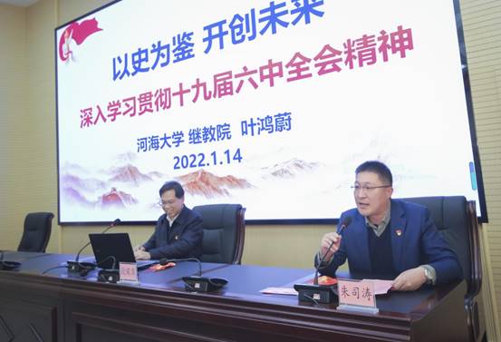 叶鸿蔚书记首先从深刻认识总结党的百年奋斗重大成就和历史经验的重大意义,深刻认识党的百年奋斗的初心使命和重大成就,深刻认识中国特色社会主义进入新时代的历史性成就和历史性变革,深刻认识党的百年奋斗的历史意义和历史经验,深刻认识以史为鉴、开创未来的重要要求,从党的百年奋斗历程中汲取智慧和力量六个方面,为党员们做了《十九届六中全会精神》的解读。仲兆宏老师带领党员们一起重温了《古田会议》的主要内容和时代价值。